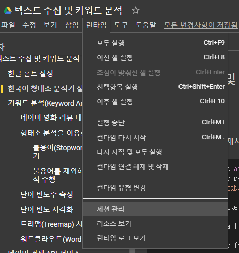 1. 발생한 문제 NameError: name 'Tagger' is not defined Google Colab으로 형태소 분석을 시도하던 중 Mecab 부분에서 계속 이 오류가 떴었다... 1시간이 넘는 시도 끝에 해결 완료!! 2. 해결 방법 다음 두 과정을 거치니 정상적으로 Mecab을 사용할 수 있었다. 1) 해당 Colab 파일 내 세션 종료 런타임 > 세션 관리 > 활성 세션 종료 2) Mecab-ko-for-Google-Colab git clone을 통해 설치하기 ! git clone https://github.com/SOMJANG/Mecab-ko-for-Google-Colab.git 해당 라이브러리의 git 저장소를 clone 해옵니다. cd Mecab-ko-for-Google-Colab ..