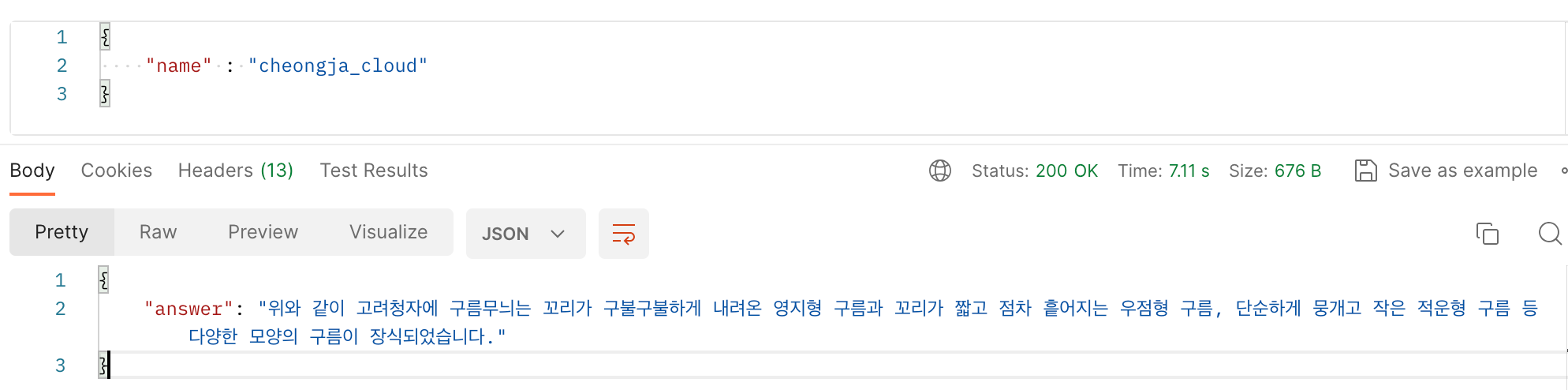 이 API는 HTTP 프로토콜 기반 Rest API 형태로 되어 있어서 네트워크를 통해 request를 받고 response를 반환합니다.