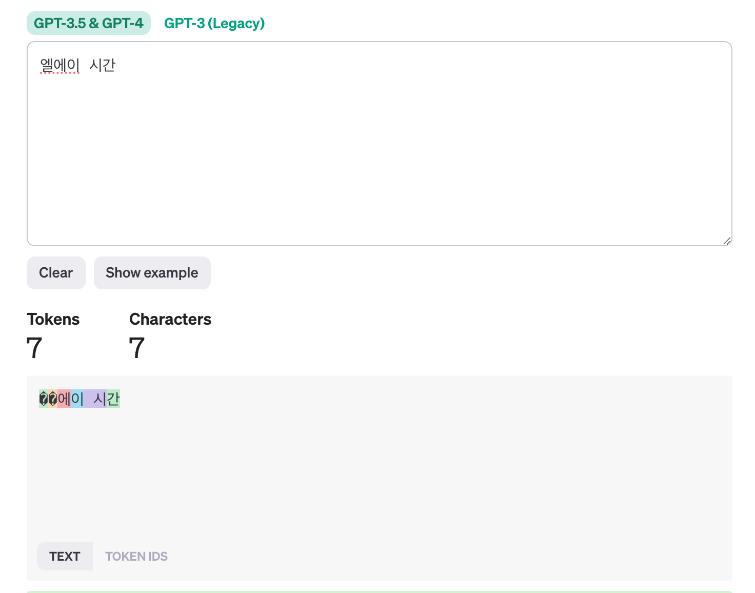 openAPI에서 텍스트 토큰을 계산해볼 수 있게 하는 Tokenizer가 있습니다.