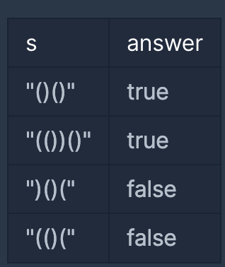 - '(' 또는 ')' 로만 이루어진 문자열 s가 주어졌을 때, 문자열 s가 올바른 괄호이면 true를 return 하고, 올바르지 않은 괄호이면 false를 return 하는 solution 함수를 완성해 주세요.