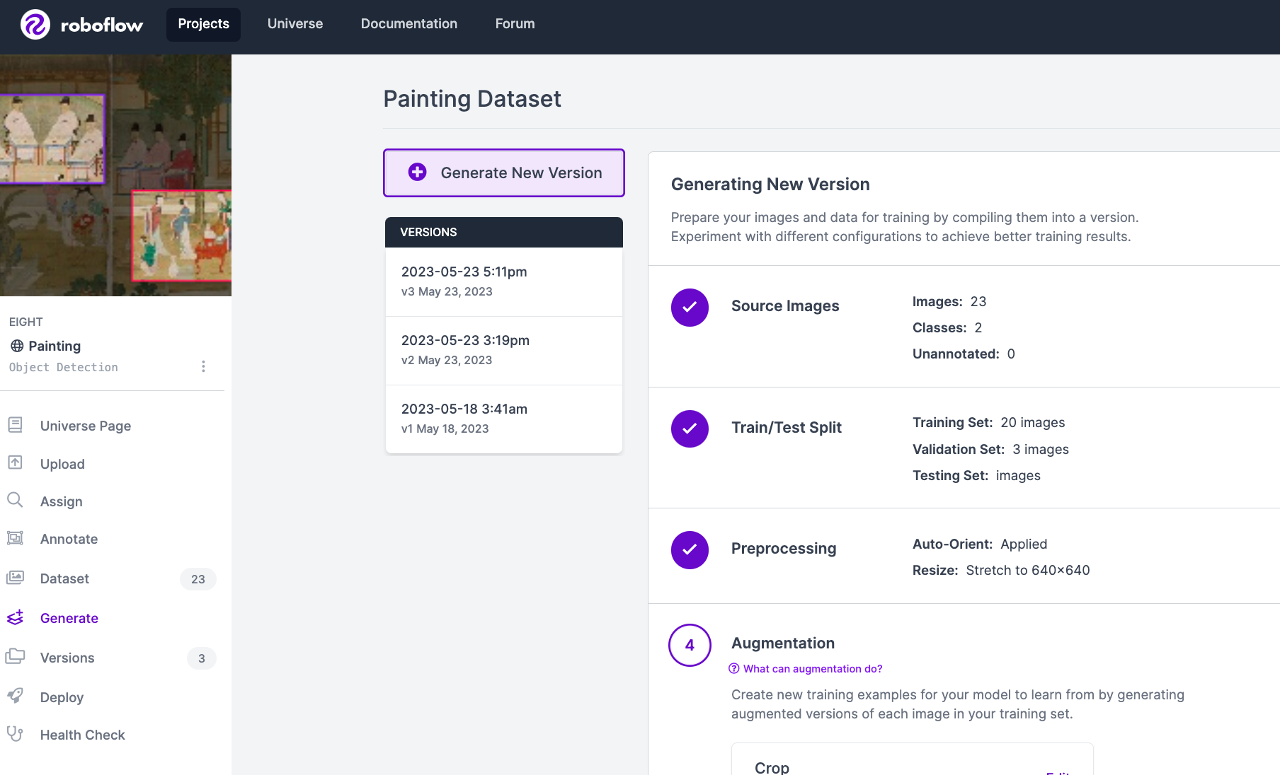 (roboflow에 있는 샘플 데이터셋을 이용하면 약 30분 정도 소요됩니다. 제가 생성한 데이터셋은 크기가 작아서 금방 됐습니다.)